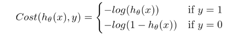 Untuk regresi logistik, fungsi Biaya didefinisikan sebagai berikut.